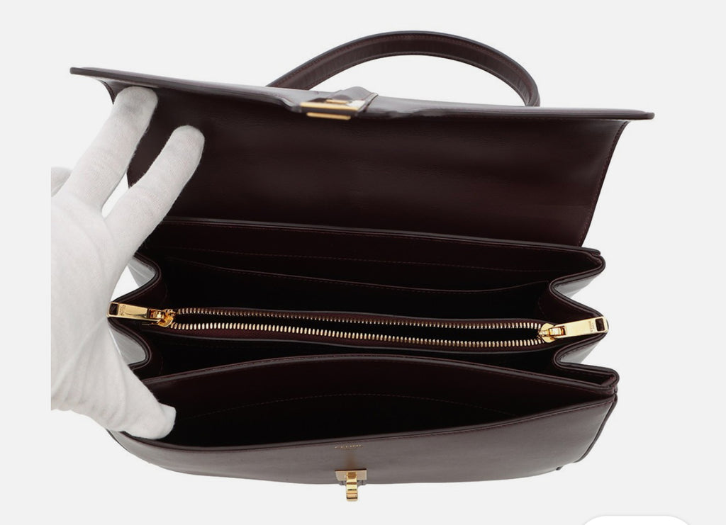 • 5 compartments in total, including one zipper compartment in the middle, with hardware in golden color (as per reference)